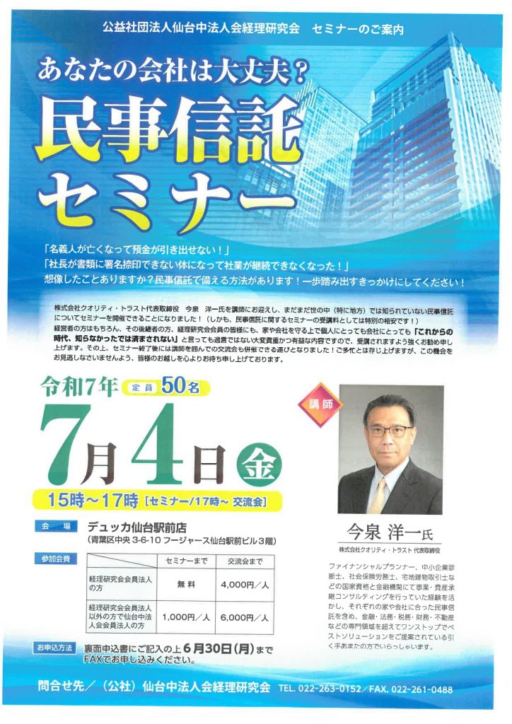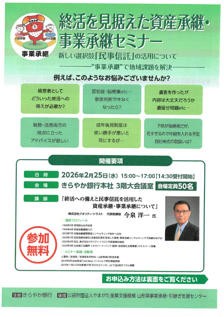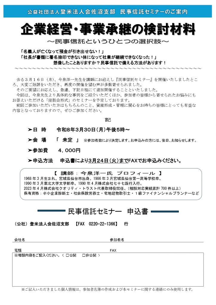 私は長年金融機関に勤め、数多くの事例を見てまいりました。中でも胸を痛めたケースは、一家の主が「大切な書類にハンコを押せなくなるとき」です。預金の払出し、会社の存続、賃貸物件の運用、相続など家族には次々と難題が降りかかり、争いごとに発展することも少なくありません。一方で、それらの課題に対応する手法は多種多様であり、日頃多忙な一般の方々が多大な時間を割いて個別に各専門家のところへ相談に出向くことは現実的ではありません。